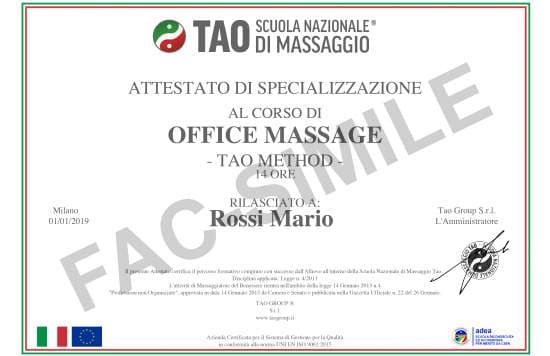Al termine del Corso di Office Massage verrà rilasciato un Attestato di Specializzazione valido su tutto il territorio nazionale.