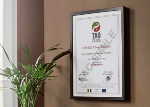 Le qualifiche rilasciate da Tao - Scuola Nazionale di Massaggio, alla fine di ogni corso o percorso, sono emesse in base alla Legge 4/2013, sarà pertanto possibile lavorare legalmente su tutto il territorio nazionale, purché l'attività non rientri nell'ambito sanitario o sconfini in quello fisioterapico, estetico o in ambiti stabiliti per legge da altre professioni riconosciute.